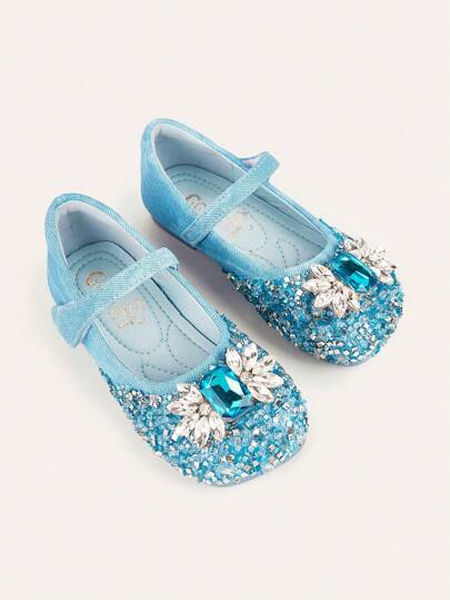 女童公主裙鞋鑲水晶艾莎公主扁平閃亮鑲鑽鞋鋼琴表演舞台鞋