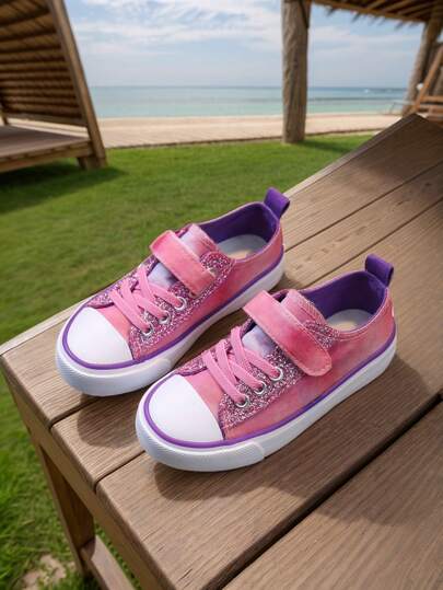 女童春秋帆布休闲平底运动鞋,儿童运动鞋 - 粉色 - 查看 1