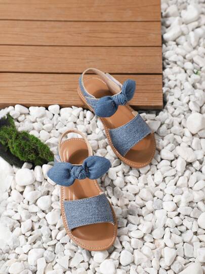 女孩夏季時尚藍色蝴蝶結開口涼鞋 - 藍色 - 查看 1