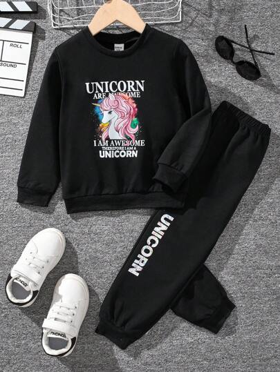 SHEIN 年轻女孩卡通印花休闲两件套 - 黑色 - 查看 1