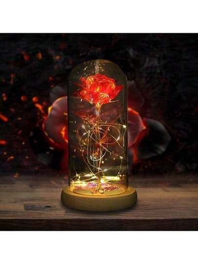 玻璃圓頂保鮮玫瑰花桌燈 - 玫瑰花 - 查看 1