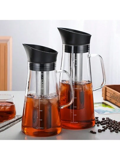 MYVIT 玻璃釀茶壺,具有耐熱手柄和不鏽鋼沖泡器,分離茶葉和水,適用於冷泡咖啡