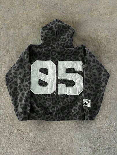Glimmora 复古街头时尚豹纹拉链卫衣 - 彩色 - 查看 1