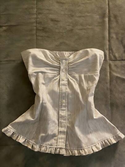 Glimmora 女士夏季休闲度假通勤条纹印花褶皱荷叶边抹胸上衣