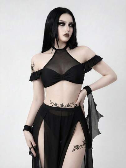 女士夏季沙滩纯色吊带性感比基尼套装,带罩裙