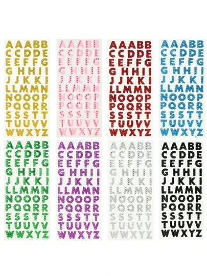 闪光水晶字母贴纸 DIY 手工姓名设计剪贴簿用品 PC 手机装饰自粘 A-Z 英文单词贴纸 - 彩色 - 查看 8