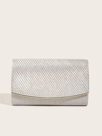 針褶壓花門襟手拿包,適用於女士晚宴派對 - 銀色 - 查看 1