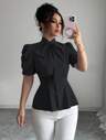 Gloray 女式常规衬衫插肩长袖纹理编织上衣,小立领,贝壳纽扣和花卉撞色,简约休闲,适合办公室、家居、街头