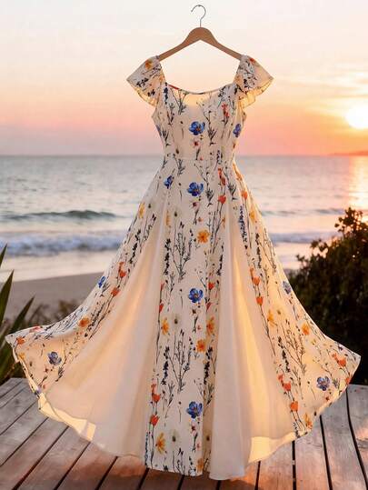 GlowEve CURVE 大码女式长腰收腰撞色碎花短袖连衣裙