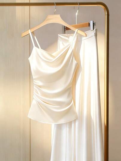 GlowEve 女士优雅休闲通勤吊带背心和裤子两件套 - 杏色 - 查看 1