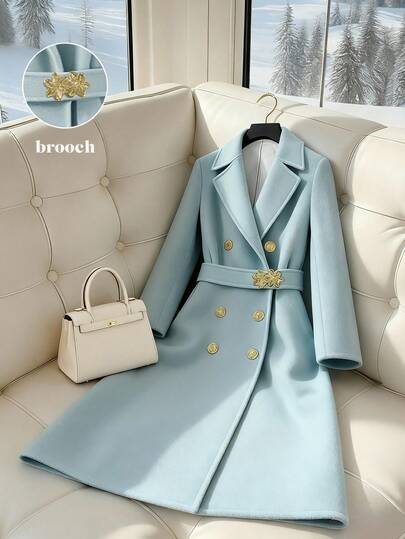 GlowEve 女士优雅双排扣长袖大衣,秋冬款 - 藍色 - 查看 1