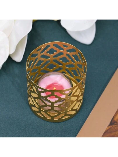 金色鐵藝蠟燭臺帶有香薰蠟燭杯,創意家居裝飾飾品 - B - 查看 4