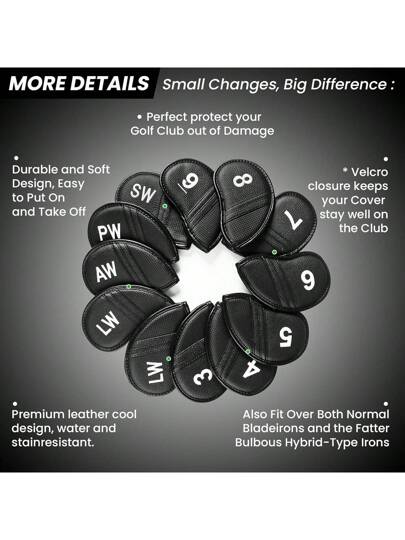 高尔夫球杆头套适用于铁杆合成皮革 12 件超值套装,豪华铁杆头套 - 彩色 - 查看 8