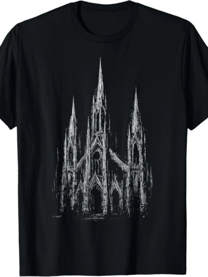 Gothic Church Cathedral Grunge Goth Dark Alt Aesthetic Art T-Shirt