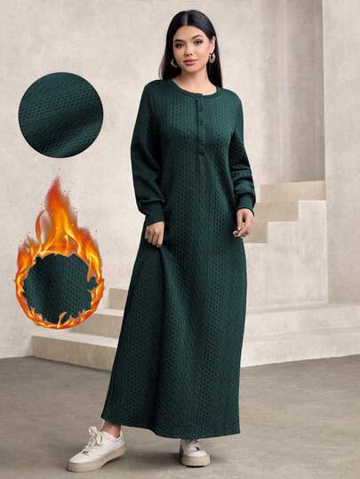 Graceveil 女士休闲纹理面料圆领宽松长款卫衣,绿色,秋冬