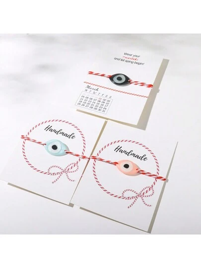 希臘三月紅白彈簧可調節樹脂眼傳統martaki 保護手鍊 友誼手鍊和卡片禮物一起送 - 三月手鐲 - 查看 5