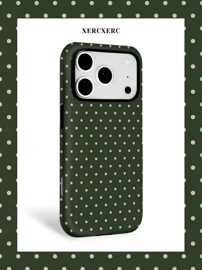 Green Polka Dot 2 In 1 PC TPU Phone Case, Matte/Light Finish, Matching Phone Cases, Funda Para Phone, Cover Phone, Christmas Phone Case, Phone Case For Phone 11 12 13 14 15 16 16e 17 Pro ProMax For Phone Air