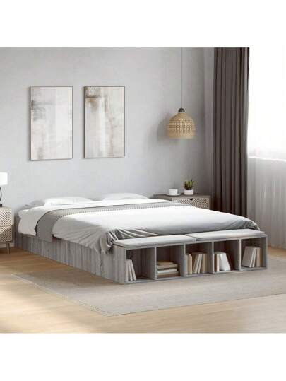 Grey Sonoma Bed Frame 140x200 Cm Stylish And Modern Design For Bedroom Storage Solution With Sturdy Support System - 灰色 - 查看 1