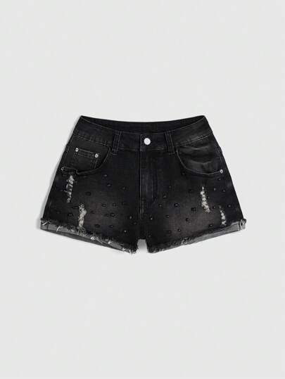 Grunge Punk Y2K风格做旧水洗低腰超短牛仔短裤,女款,夏季,街头风