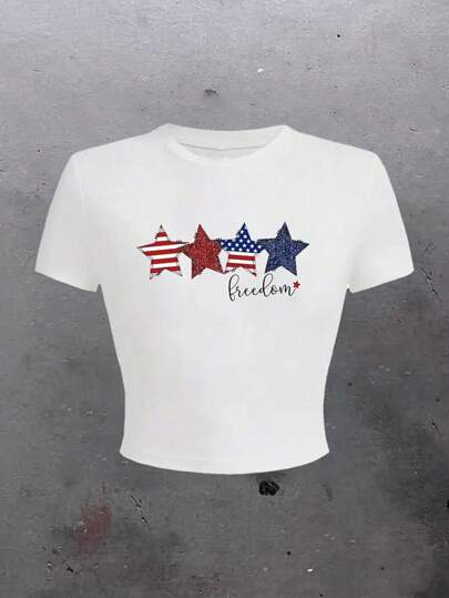 Graphic Printed Short T-Shirt, Y2K Spring And Summer Short-Sleeved Crop Top, Women's Top - 白色 - 查看 6