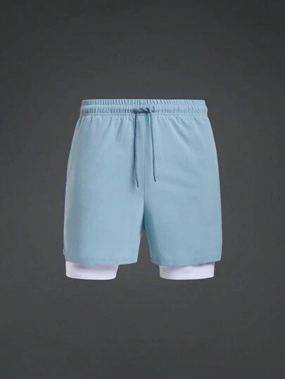 Manfinity Sport Corelite 男友风男士撞色抽绳腰带二合一运动短裤 - 彩色 - 查看 1