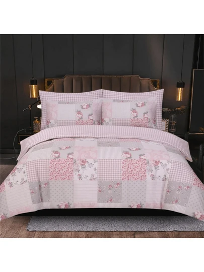 100% Rich Cotton Duvet Quilt Cover Bedding Set Double King & Super King Size - Patchwork Grey - 查看 7