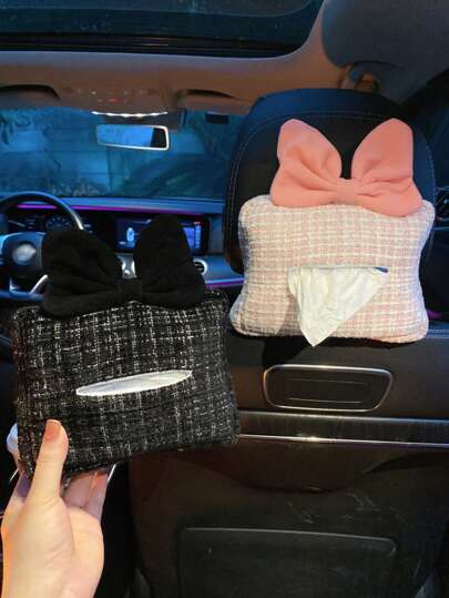 1 件装可爱蝴蝶结汽车纸巾盒汽车座椅多功能悬挂式纸巾盒 - 均碼 - 查看 1