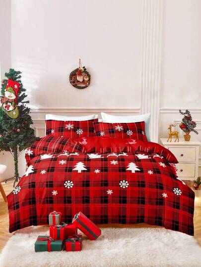 3 件套圣诞驯鹿圣诞树印花羽绒被套套装(1 个羽绒被套和 2 个枕套)柔软亲肤羽绒被套床上用品套装,适合家庭使用,四季床单套装圣诞礼物 - 彩色 - 查看 7