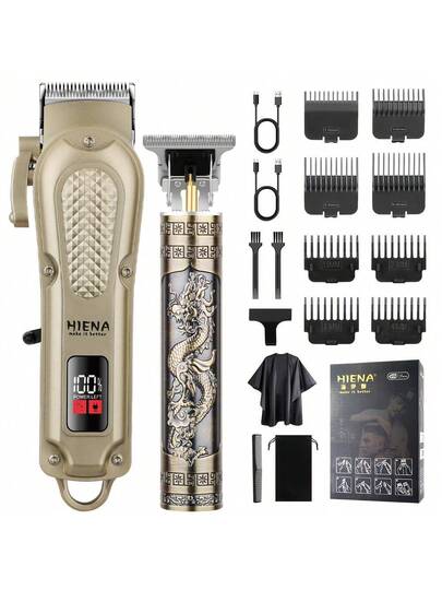 HIENA 1/2件套专业男士理发器套装,无线USB充电锂电池,ABS材质,数字显示屏,理发师和家庭用户的理想之选,理想的居家礼品 - 銅色 - 查看 1