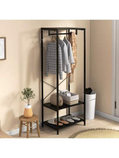 HOMCOM Coat Rack, 2-In-1 Clothes Stand With Shoe Storage, 168cm Free Standing Hall Tree With Hanging Rail And 2 Storage Shelves For Hallway, Entryway, Bedroom, Black - 黑色 - 查看 1