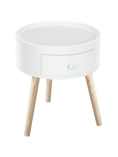 HOMCOM Modern Side Table, Small Coffee Table, Round Bedside Table With Drawer And Wood Legs For Living Room, Bedroom, White - 棕色 - 查看 1