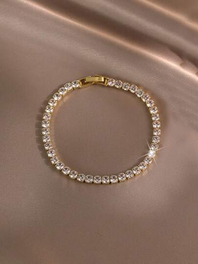 1条优雅闪亮的网球形锆石链手链,适合女孩作为友谊手链、节日、婚礼、订婚、周年纪念派对礼物。 - 金色 - 查看 1