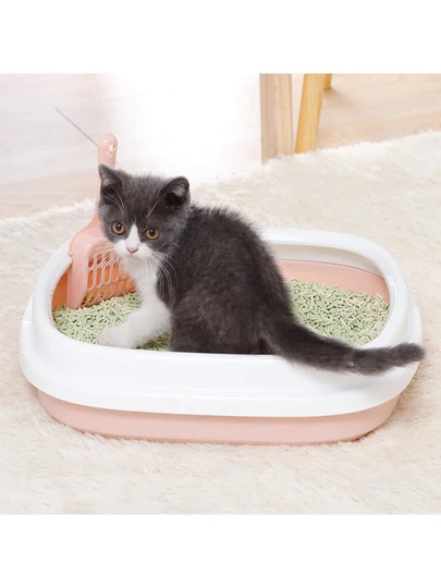 蓮花粉色半封閉防濺貓砂盆,適用於幼貓 - 藕粉色 - 查看 1