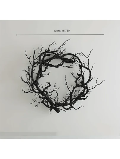 万圣节人造花环装饰 - 秋季花环,带有骷髅/南瓜/浆果/丝带/玫瑰图案,适用于派对、家居墙壁、花园装饰 - 黑色 - 查看 10