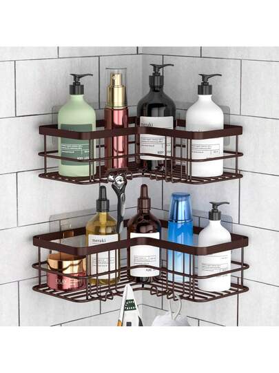 淋浴架,2 件装淋浴收纳架,适用于室内淋浴间,自粘式淋浴架,大容量防锈不锈钢浴室壁挂式收纳架,返校