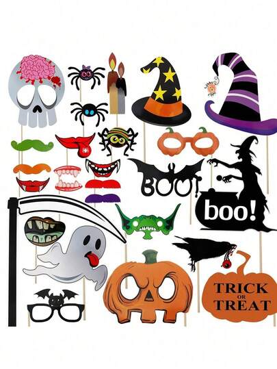 万圣节照相亭道具 26 件 万圣节装饰品 - 彩色 - 查看 1