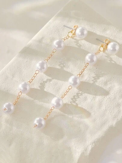 1对优雅珍珠链坠耳环,女士款,仿珍珠线性耳环,珍珠流苏吊坠耳环,两种佩戴方式,珍珠耳钉,前后皆可佩戴,珍珠耳夹,新娘婚礼珍珠耳环,圣诞节冬季圣诞礼物 - 珍珠白 - 查看 1