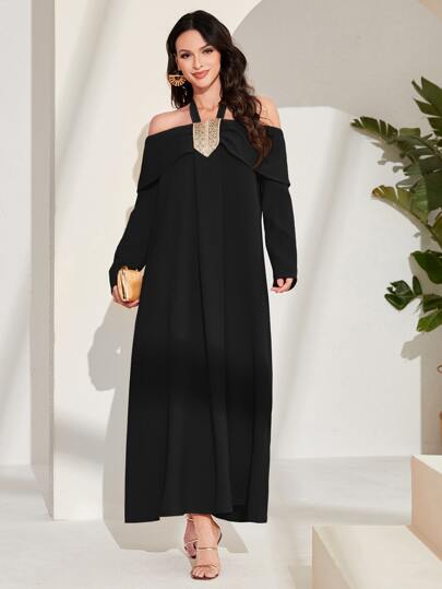 Modelyn 繞頸刺繡細節連衣裙 - 黑色 - 查看 1