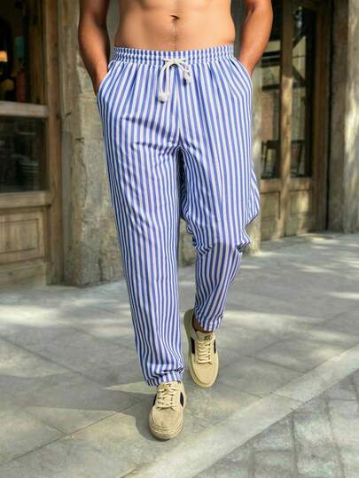 HIMLAND 男士休闲梭织竖条纹中腰抽绳锥形裤,秋季,Old Money - 彩色 - 查看 1