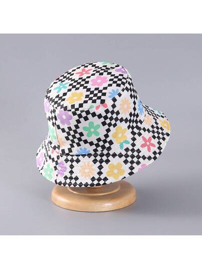 手繪花裝飾桶帽,適用於學生,可翻轉的鮮活款桶帽,適用於戶外活動 - 白色 - 查看 1