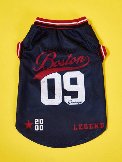 PETSIN 1 件宠物猫狗通用海军蓝 09 号球衣,带英文数字条纹撞色罗纹袖口,舒适时尚狗狗背心 - 彩色 - 查看 1