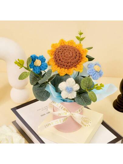 手工钩针玫瑰花束 - 1 件钩针玫瑰布,适用于母亲节、圣诞节、感恩节、毕业典礼和家居装饰 - 向日葵 - 查看 3