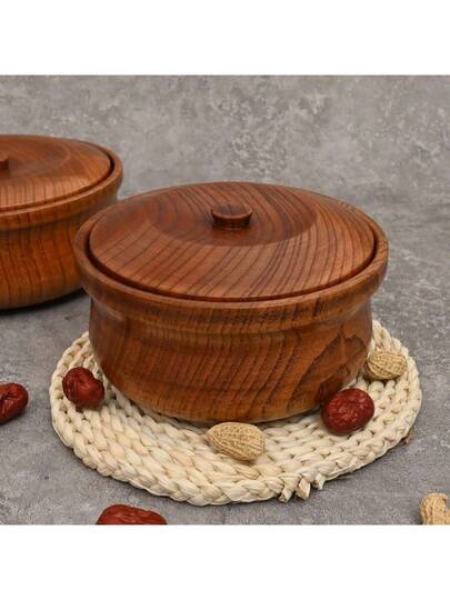 手工枣木带盖水果碗 方便面碗 炒饭碗 果盘 春卷 零食 干果 甜品碗 沙拉碗 带可调节腰环 - 紅木色 - 查看 6