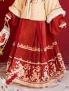 2026新年汉服 | 现代化中国书法印花压褶马脸裙 - 可调节搭扣高腰裙摆