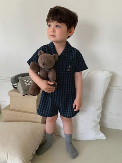 Hapijoa 男童格子休闲宽松家居服 - 藍色 - 查看 1