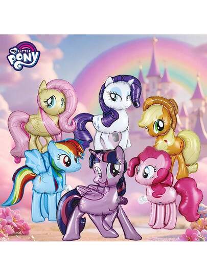 Hasbro 6件套小马宝莉官方授权暮光闪闪、苹果嘉儿、云宝黛西、柔柔、珍奇、碧琪气球套装,可爱卡通风格装饰,嘉年华派对拍照道具,派对用品,圣诞节生日礼物 - 彩色 - 查看 6