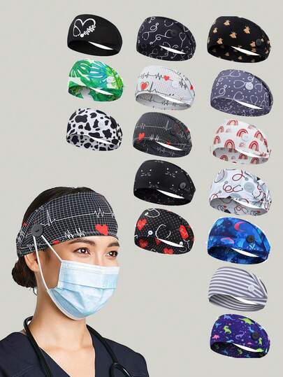 带纽扣的口罩头带,宽版护士头带,防滑弹性护耳带,男女通用,医生吸汗头带,秋冬季发带,女士度假装扮发饰,女士优雅围巾,女士头巾 - 彩色 - 查看 1
