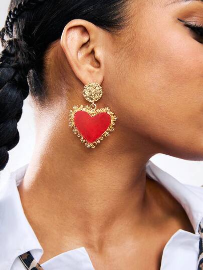 心形吊坠耳环 情人节、妈妈、母亲、母亲节、礼物 - 紅色 - 查看 4