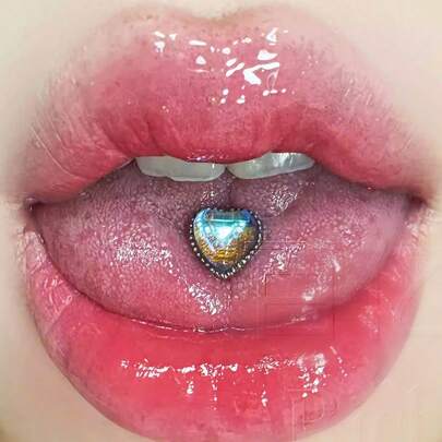 心形月光石钛钢外螺纹舌钉,独特心形舌环 - 愛心月光石 舌釘 - 查看 6