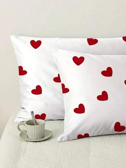 心形图案枕套 - 白色 - 查看 1